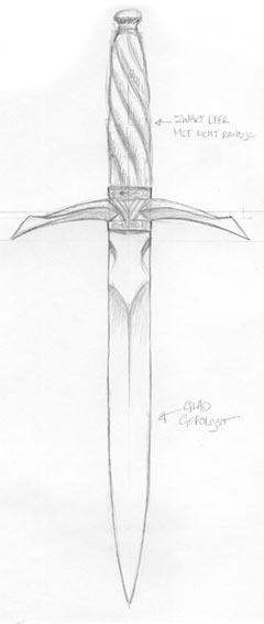 For the spine a dagger was chosen to be the image to show. After doing some dagger research I came up with a sketch which I refined in Illustrator and finalised in Photoshop. So this was another digital painting.