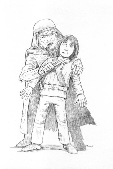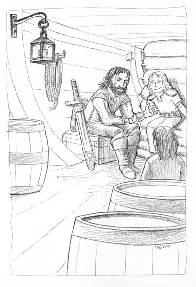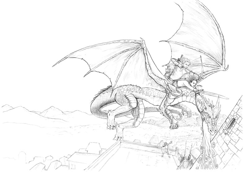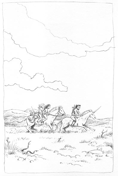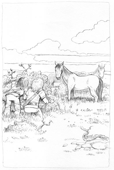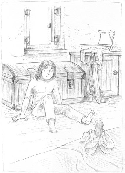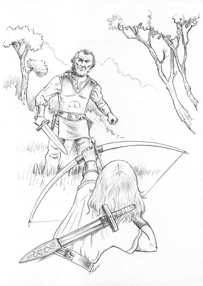 And this was not all! This time also 15 inside illustrations had to be made. This turned out to be a lengthy job. Quite a bit of research had to be done, not only reading the book but also for the accessoiries. Things like how the boy wore their sword on their back etc. A fun time, but the deadline came sooner than expected and I needed to make some long nights of work to get the job done in time. It was and the scanner and printer did a good job of gettin a nice package into the book stores.