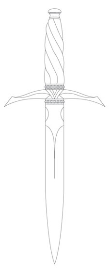 For the spine a dagger was chosen to be the image to show. After doing some dagger research I came up with a sketch which I refined in Illustrator and finalised in Photoshop. So this was another digital painting.