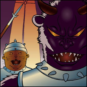 Attack, Ticheltje and friends destroy Scherptand's castle